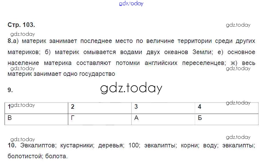 На страницах сайта gdz.today вы найдете учебный и вспомогательный материал, направленный на улучшения знаний школьной программы. ГДЗ - онлайн мир знаний Страницы (решение) 103 Тетради-практикуму по Географии для 5 класса Молодцов Русское слово Инновационная школа 2015