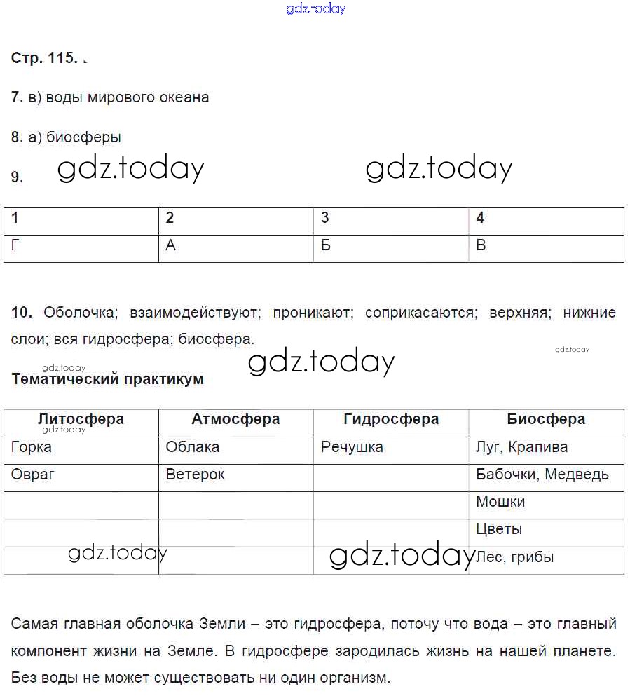 На страницах сайта gdz.today вы найдете учебный и вспомогательный материал, направленный на улучшения знаний школьной программы. ГДЗ - онлайн мир знаний Страницы (решение) 115 Тетради-практикуму по Географии для 5 класса Молодцов Русское слово Инновационная школа 2015