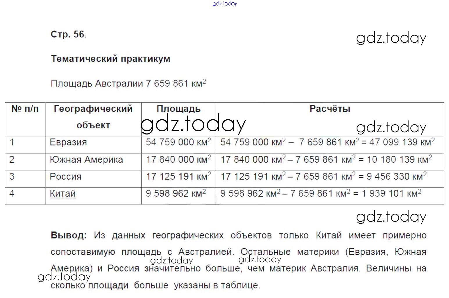 На страницах сайта gdz.today вы найдете учебный и вспомогательный материал, направленный на улучшения знаний школьной программы. ГДЗ - онлайн мир знаний Страницы (решение) 56 Тетради-практикуму по Географии для 5 класса Молодцов Русское слово Инновационная школа 2015