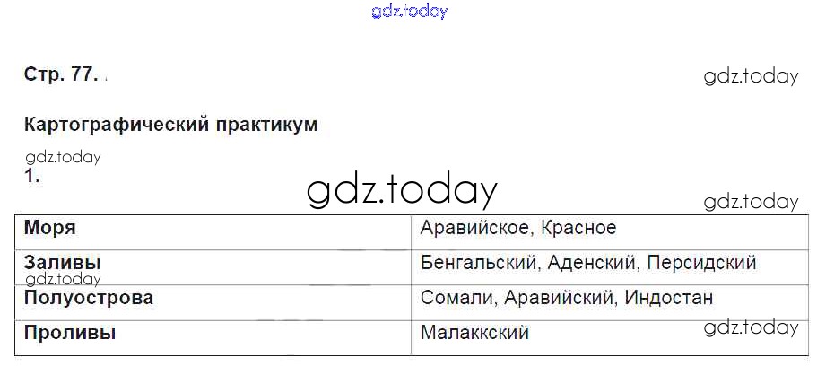 На страницах сайта gdz.today вы найдете учебный и вспомогательный материал, направленный на улучшения знаний школьной программы. ГДЗ - онлайн мир знаний Страницы (решение) 77 Тетради-практикуму по Географии для 5 класса Молодцов Русское слово Инновационная школа 2015