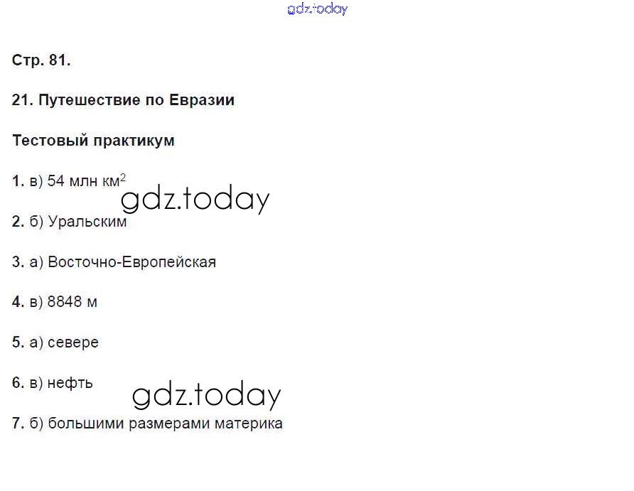На страницах сайта gdz.today вы найдете учебный и вспомогательный материал, направленный на улучшения знаний школьной программы. ГДЗ - онлайн мир знаний Страницы (решение) 81 Тетради-практикуму по Географии для 5 класса Молодцов Русское слово Инновационная школа 2015