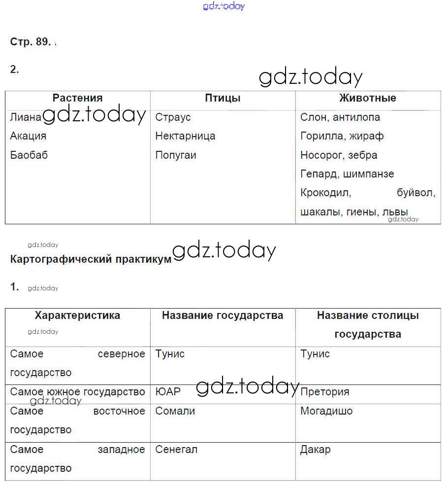 На страницах сайта gdz.today вы найдете учебный и вспомогательный материал, направленный на улучшения знаний школьной программы. ГДЗ - онлайн мир знаний Страницы (решение) 89 Тетради-практикуму по Географии для 5 класса Молодцов Русское слово Инновационная школа 2015