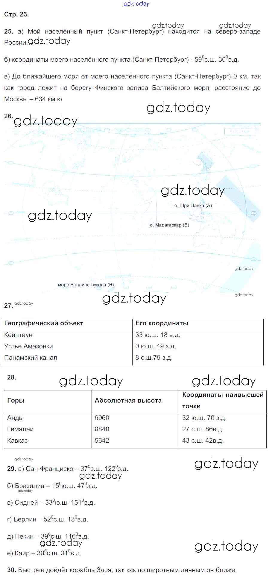 На страницах сайта gdz.today вы найдете учебный и вспомогательный материал, направленный на улучшения знаний школьной программы. ГДЗ - онлайн мир знаний Страницы (решение) 23 Моему тренажёру по Географии для 5-6 класса Николина Просвещение Полярная звезда 2014