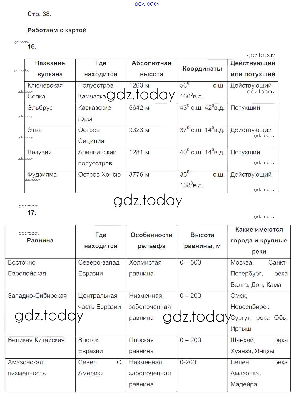 На страницах сайта gdz.today вы найдете учебный и вспомогательный материал, направленный на улучшения знаний школьной программы. ГДЗ - онлайн мир знаний Страницы (решение) 38 Моему тренажёру по Географии для 5-6 класса Николина Просвещение Полярная звезда 2014
