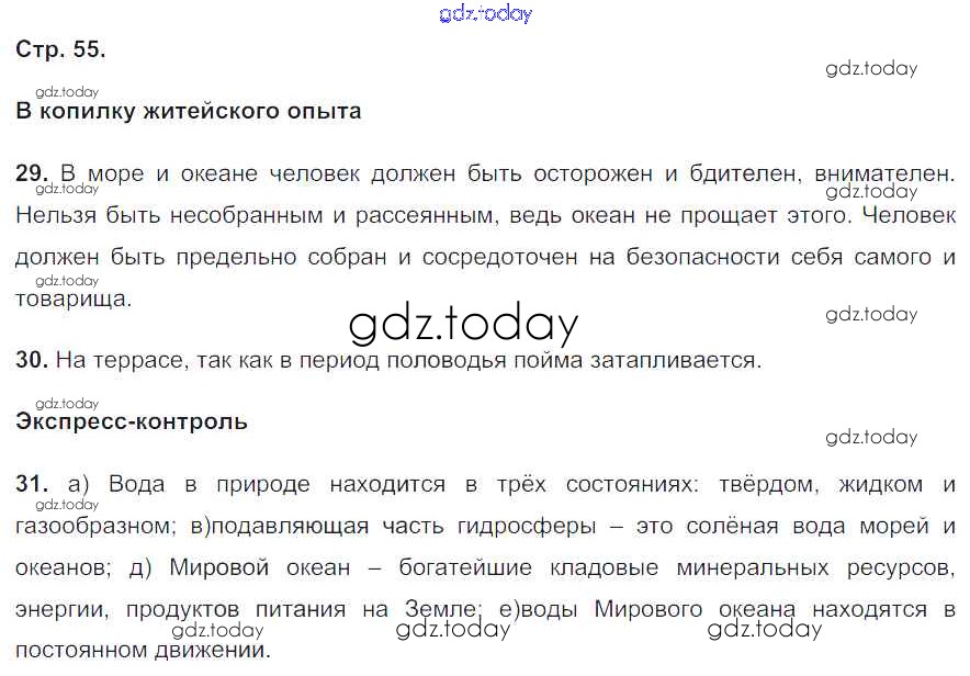 На страницах сайта gdz.today вы найдете учебный и вспомогательный материал, направленный на улучшения знаний школьной программы. ГДЗ - онлайн мир знаний Страницы (решение) 55 Моему тренажёру по Географии для 5-6 класса Николина Просвещение Полярная звезда 2014