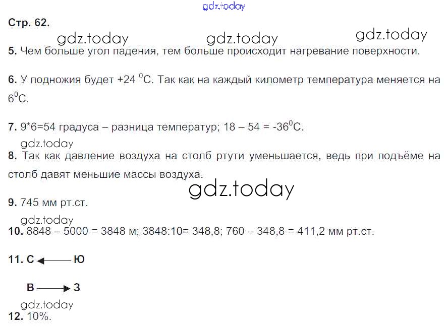 Ответы к Страницы (решение) 62 Моему тренажёру по Географии для 5-6 класса Николина Просвещение Полярная звезда 2014