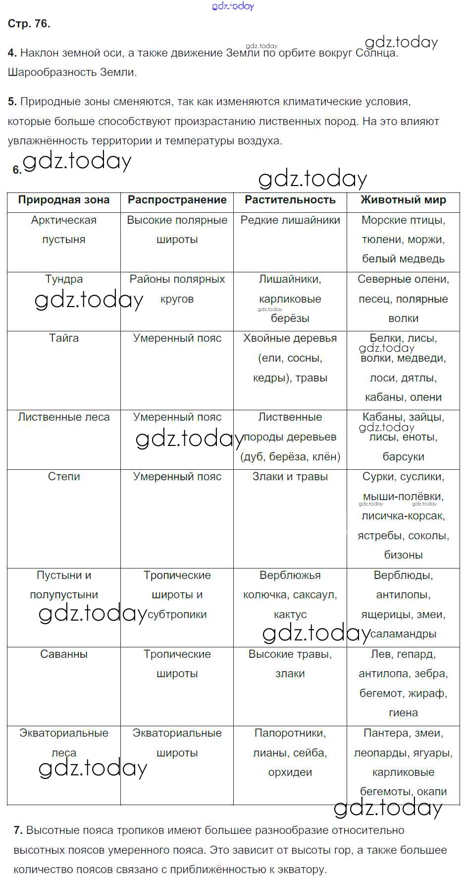 На страницах сайта gdz.today вы найдете учебный и вспомогательный материал, направленный на улучшения знаний школьной программы. ГДЗ - онлайн мир знаний Страницы (решение) 76 Моему тренажёру по Географии для 5-6 класса Николина Просвещение Полярная звезда 2014
