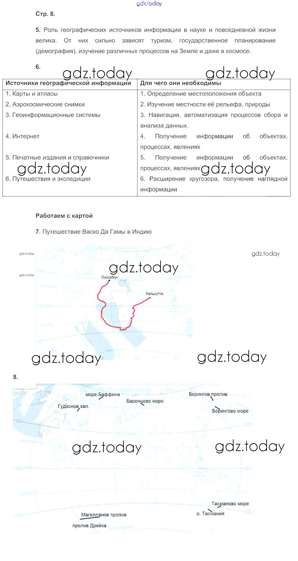На страницах сайта gdz.today вы найдете учебный и вспомогательный материал, направленный на улучшения знаний школьной программы. ГДЗ - онлайн мир знаний Страницы (решение) 8 Моему тренажёру по Географии для 5-6 класса Николина Просвещение Полярная звезда 2014