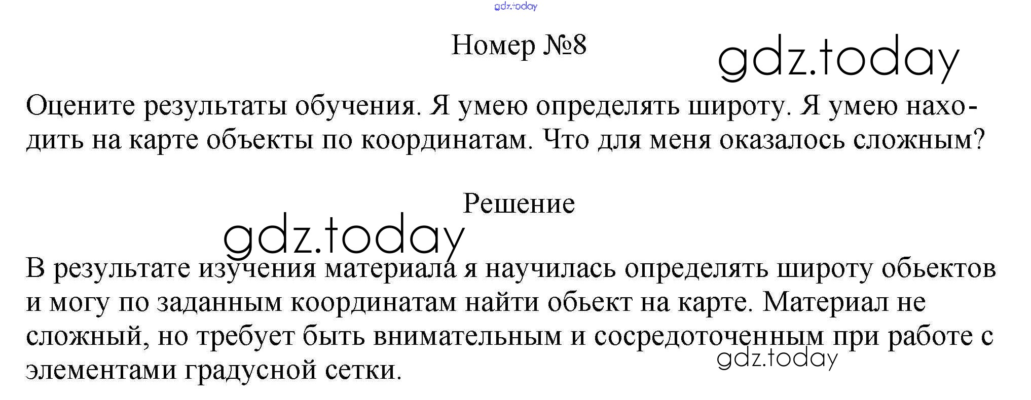 На страницах сайта gdz.today вы найдете учебный и вспомогательный материал, направленный на улучшения знаний школьной программы. ГДЗ - онлайн мир знаний Решения к теме 15 8 Рабочей тетради по Географии для 5 класса Николина Экзамен УМК 2022