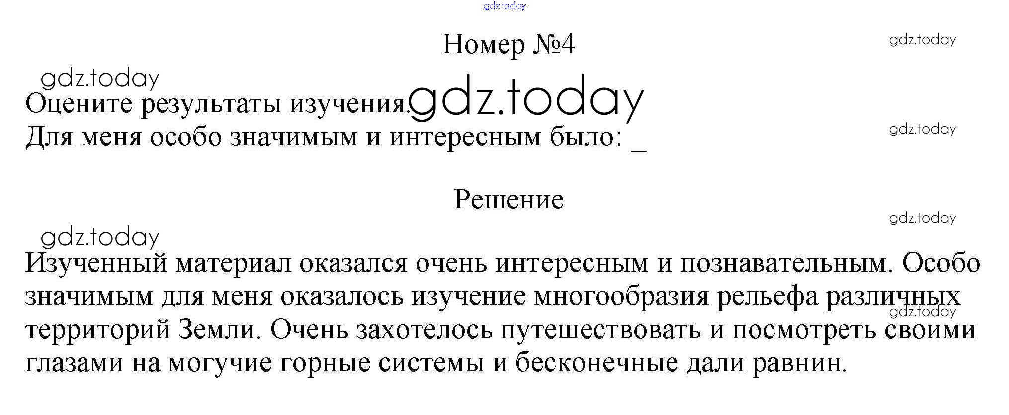 На страницах сайта gdz.today вы найдете учебный и вспомогательный материал, направленный на улучшения знаний школьной программы. ГДЗ - онлайн мир знаний Решения к теме 24 4 Рабочей тетради по Географии для 5 класса Николина Экзамен УМК 2022