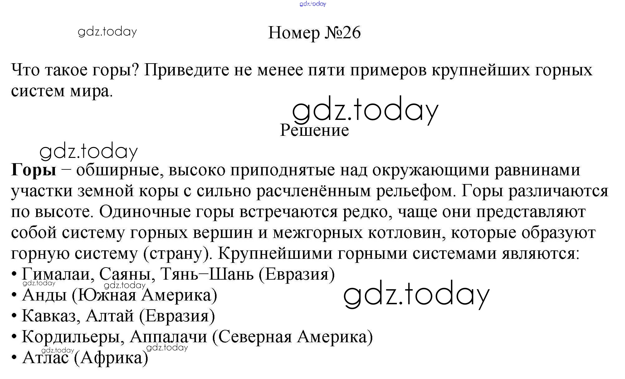 На страницах сайта gdz.today вы найдете учебный и вспомогательный материал, направленный на улучшения знаний школьной программы. ГДЗ - онлайн мир знаний Обобщение знаний 26 Рабочей тетради по Географии для 5 класса Николина Экзамен УМК 2022