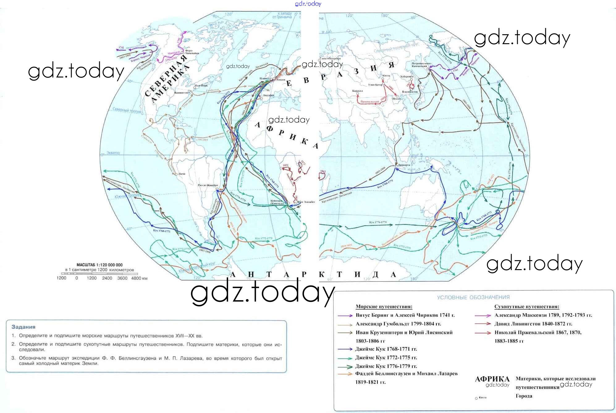 На страницах сайта gdz.today вы найдете учебный и вспомогательный материал, направленный на улучшения знаний школьной программы. ГДЗ - онлайн мир знаний Страницы 4-5 (решение) Карта путешествий XVII—XX вв. Контурным картам по Географии для 5 класса Петрова, Кучеренко Просвещение Полярная звезда 2021