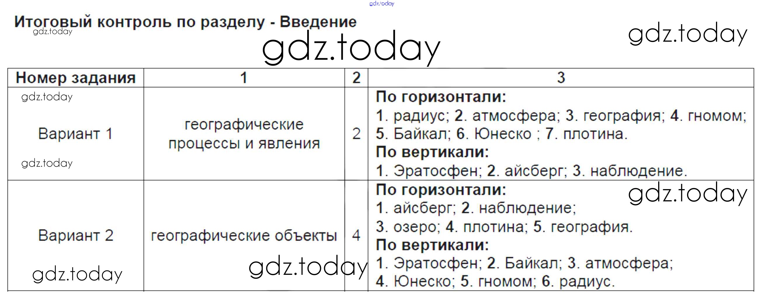 На страницах сайта gdz.today вы найдете учебный и вспомогательный материал, направленный на улучшения знаний школьной программы. ГДЗ - онлайн мир знаний Введение Итоговый контроль Тестам по Географии для 5 класса Пятунин, Пятунина Экзамен УМК 2017