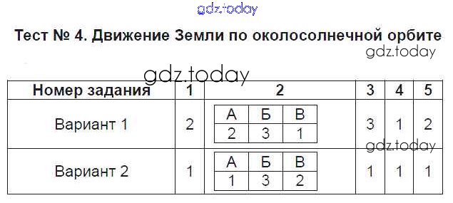 На страницах сайта gdz.today вы найдете учебный и вспомогательный материал, направленный на улучшения знаний школьной программы. ГДЗ - онлайн мир знаний Земля как планета солнечной системы Тест 4 Тестам по Географии для 5 класса Пятунин, Пятунина Экзамен УМК 2017