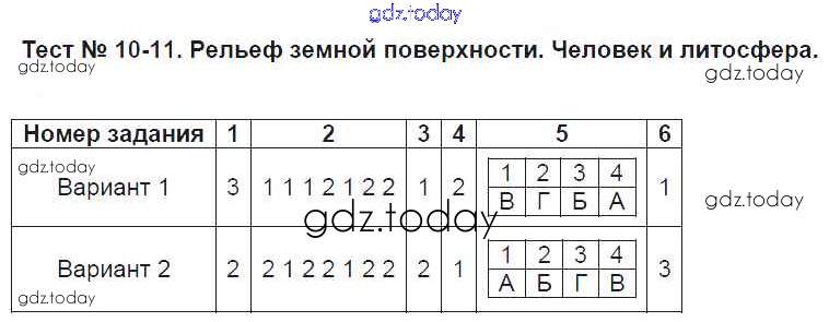 Ответы к Внутреннее строение земли Тест 10-11 Тестам по Географии для 5 класса Пятунин, Пятунина Экзамен УМК 2017