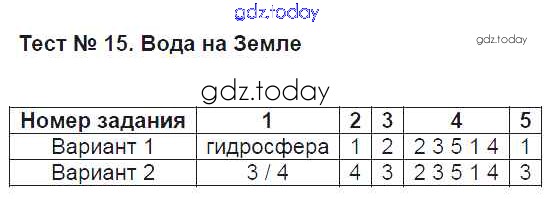 На страницах сайта gdz.today вы найдете учебный и вспомогательный материал, направленный на улучшения знаний школьной программы. ГДЗ - онлайн мир знаний Водная оболочка земли Тест 15 Тестам по Географии для 5 класса Пятунин, Пятунина Экзамен УМК 2017