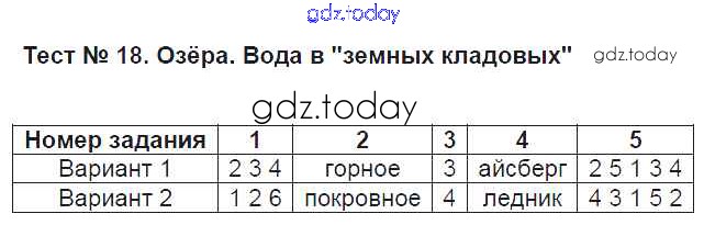 Ответы к Водная оболочка земли Тест 18 Тестам по Географии для 5 класса Пятунин, Пятунина Экзамен УМК 2017