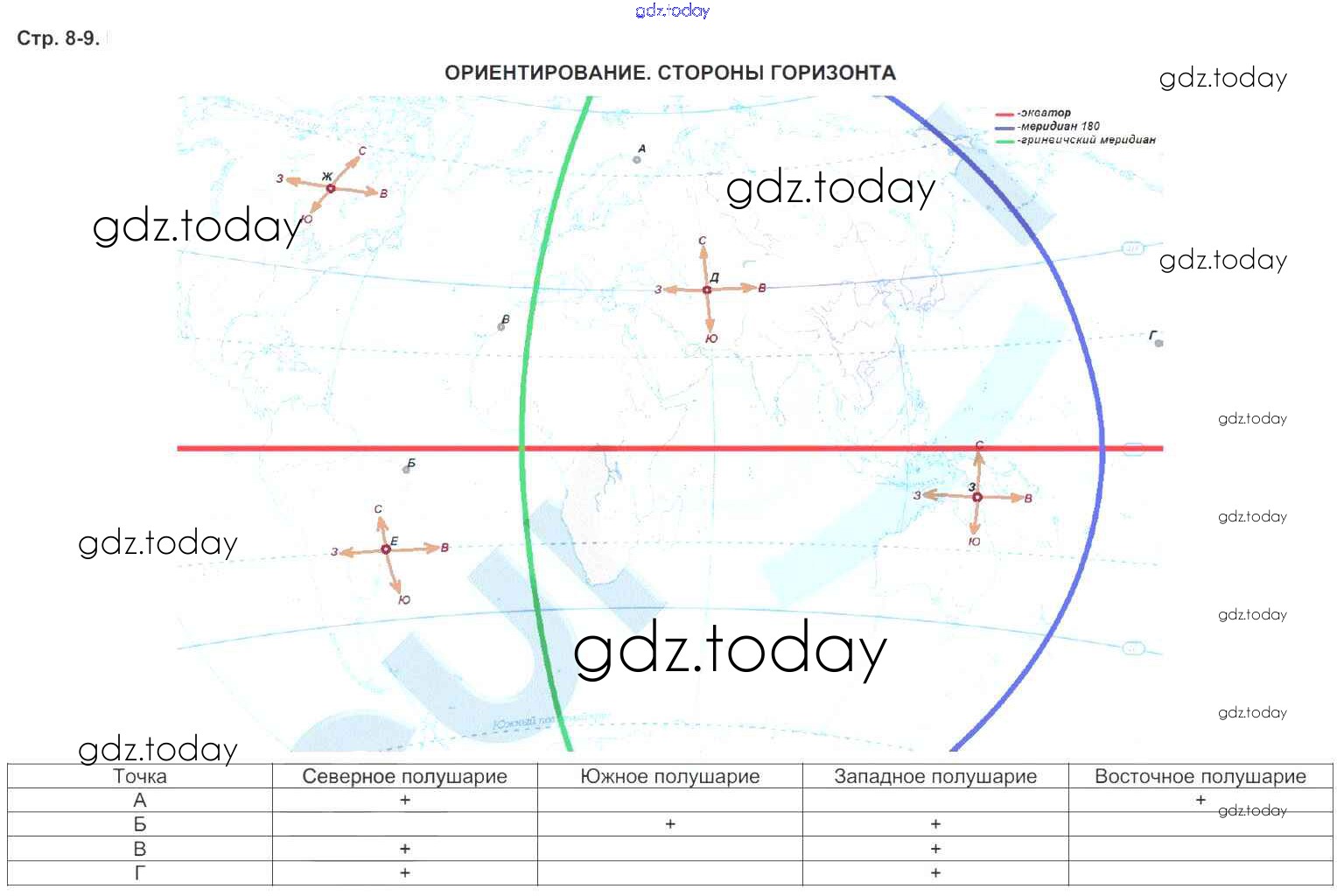 Ответы к Решение к части 1. Страницы 9 Контурным картам по Географии для 5 класса Курбский, Гущина Дрофа 2018