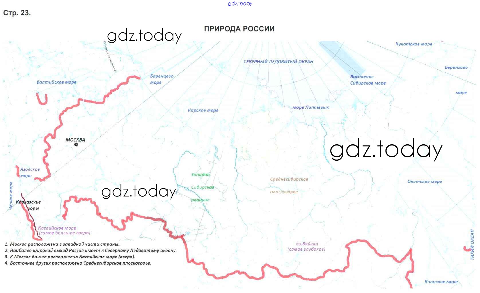 На страницах сайта gdz.today вы найдете учебный и вспомогательный материал, направленный на улучшения знаний школьной программы. ГДЗ - онлайн мир знаний Решение к части 2. Страницы 23 Контурным картам по Географии для 5 класса Курбский, Гущина Дрофа 2018
