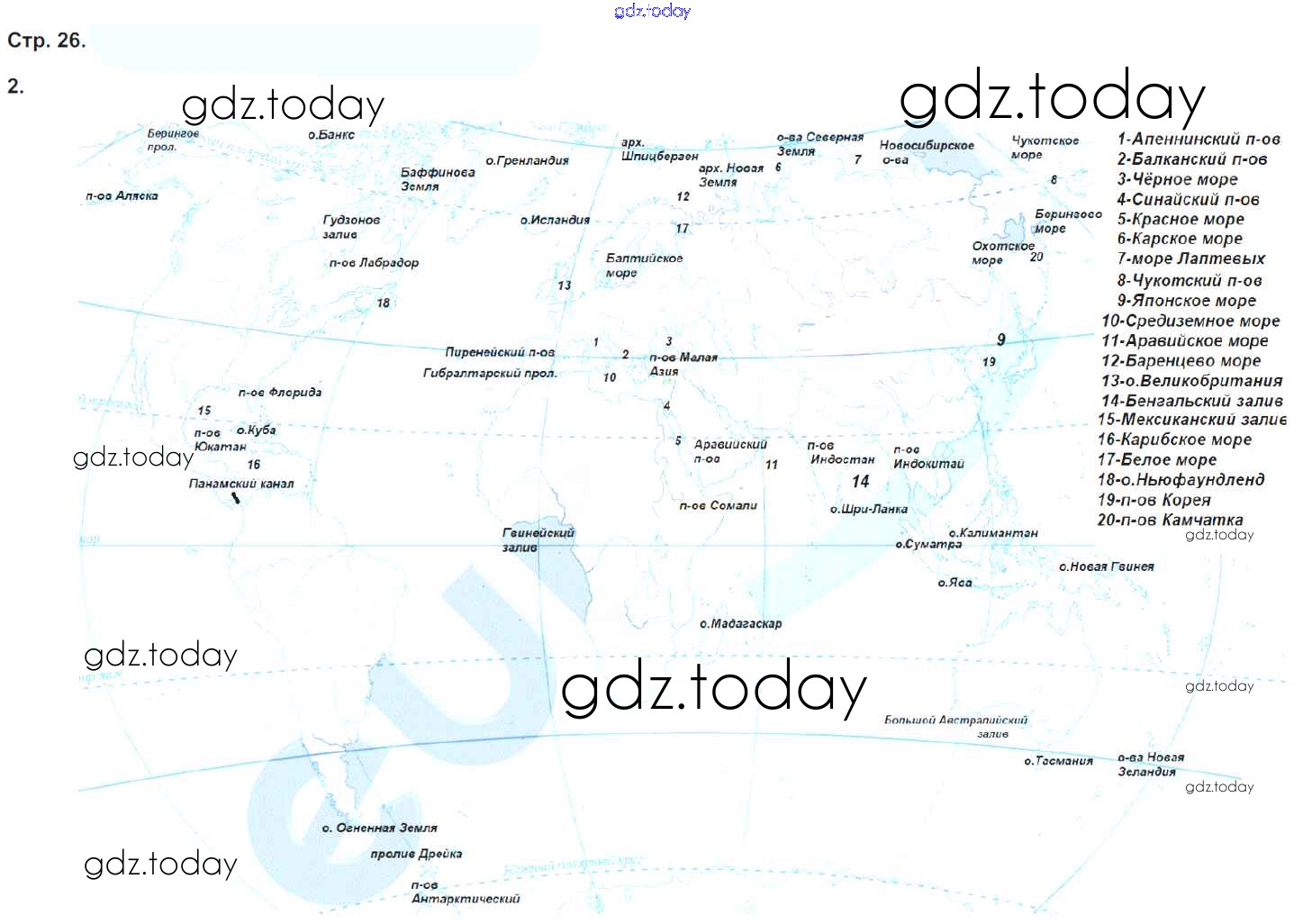 На страницах сайта gdz.today вы найдете учебный и вспомогательный материал, направленный на улучшения знаний школьной программы. ГДЗ - онлайн мир знаний Страницы (решение) 26 Рабочей тетради по Географии для 5-6 класса Сиротин Дрофа 2019
