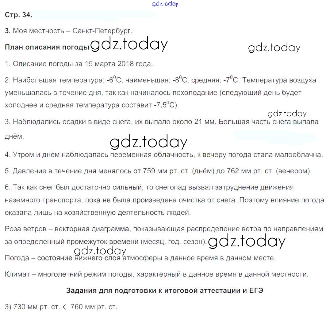 На страницах сайта gdz.today вы найдете учебный и вспомогательный материал, направленный на улучшения знаний школьной программы. ГДЗ - онлайн мир знаний Страницы (решение) 34 Рабочей тетради по Географии для 5-6 класса Сиротин Дрофа 2019