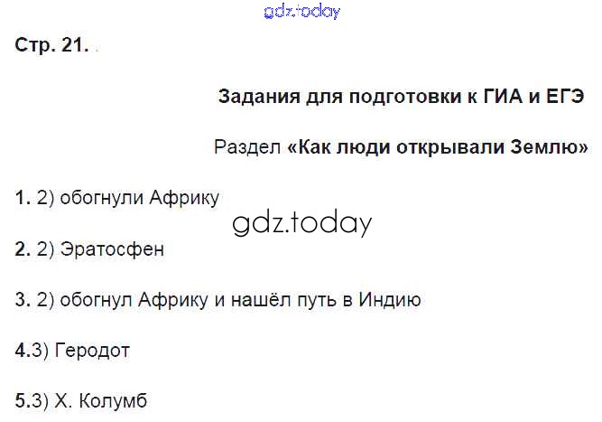 На страницах сайта gdz.today вы найдете учебный и вспомогательный материал, направленный на улучшения знаний школьной программы. ГДЗ - онлайн мир знаний Страницы (решение) 21 Рабочей тетради по Географии для 5 класса Сонин, Курчина Дрофа УМК 2015