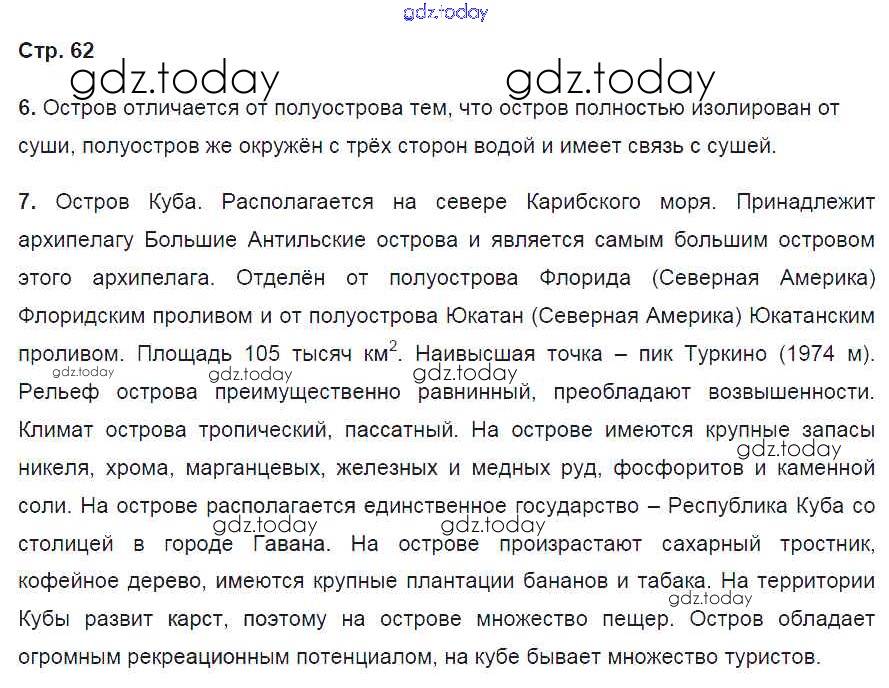 На страницах сайта gdz.today вы найдете учебный и вспомогательный материал, направленный на улучшения знаний школьной программы. ГДЗ - онлайн мир знаний Страницы (решение) 62 Рабочей тетради по Географии для 5 класса Сонин, Курчина Дрофа УМК 2015