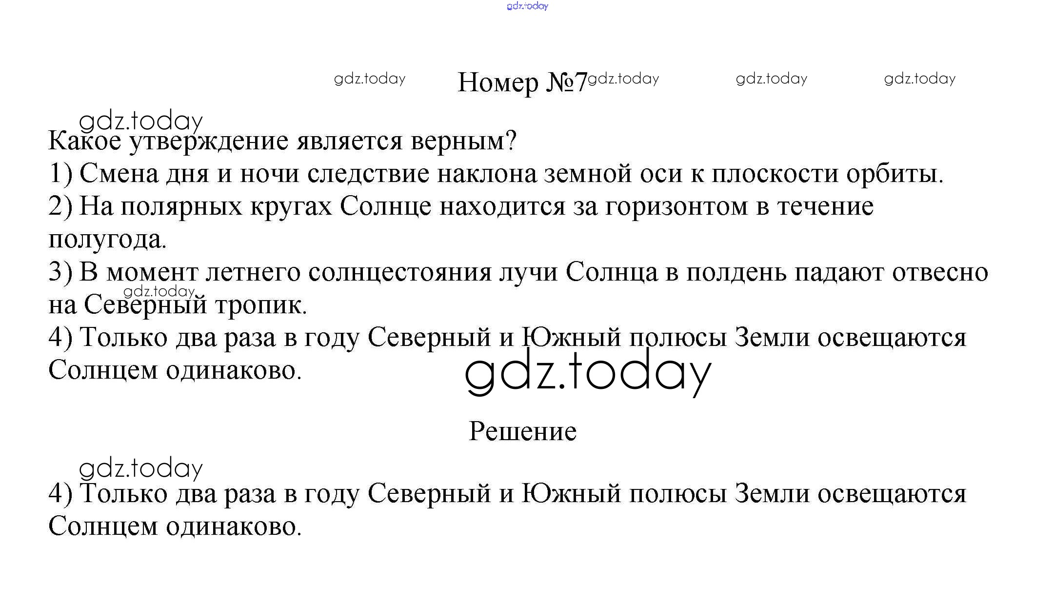 На страницах сайта gdz.today вы найдете учебный и вспомогательный материал, направленный на улучшения знаний школьной программы. ГДЗ - онлайн мир знаний Решение к §7. Солнечный свет на Земле 7 Учебнику по Географии для 5-6 класса Алексеев, Николина Просвещение Полярная звезда 2018