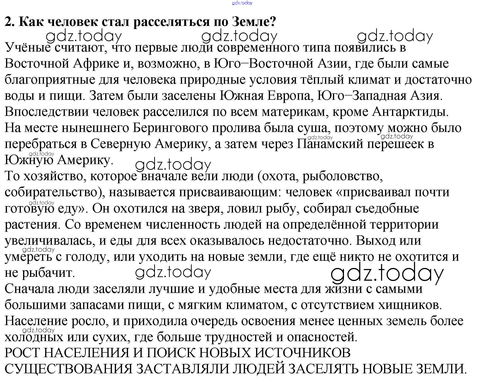 На страницах сайта gdz.today вы найдете учебный и вспомогательный материал, направленный на улучшения знаний школьной программы. ГДЗ - онлайн мир знаний Решение к §17. Как люди заселяли Землю 2 Учебнику по Географии для 5-6 класса Алексеев, Николина Просвещение Полярная звезда 2018