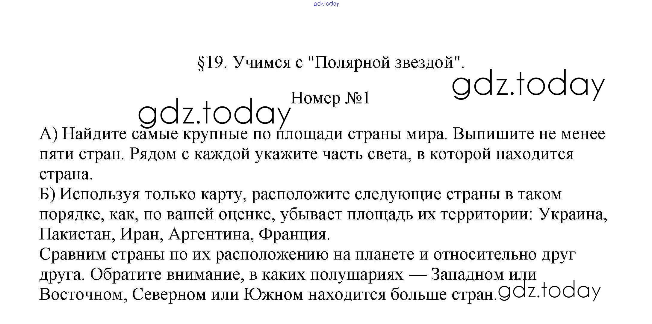 На страницах сайта gdz.today вы найдете учебный и вспомогательный материал, направленный на улучшения знаний школьной программы. ГДЗ - онлайн мир знаний Решение к §19. Учимся с "Полярной звездой" 1 Учебнику по Географии для 5-6 класса Алексеев, Николина Просвещение Полярная звезда 2018