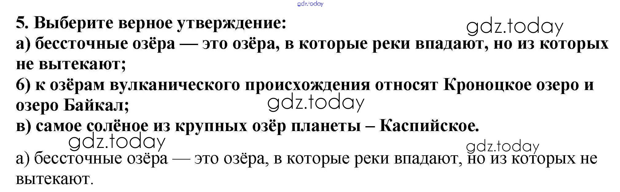 Ответы к Решение к §35. Озера и болота 5 Учебнику по Географии для 5-6 класса Алексеев, Николина Просвещение Полярная звезда 2018