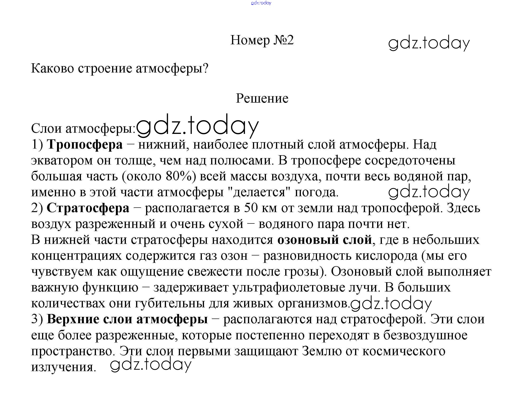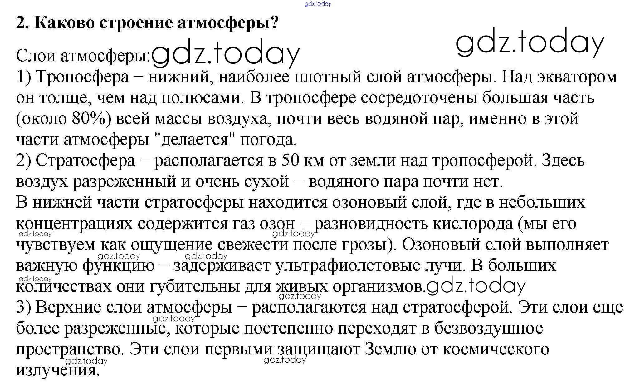 На страницах сайта gdz.today вы найдете учебный и вспомогательный материал, направленный на улучшения знаний школьной программы. ГДЗ - онлайн мир знаний Решение к §38. Состав и строение атмосферы 2 Учебнику по Географии для 5-6 класса Алексеев, Николина Просвещение Полярная звезда 2018