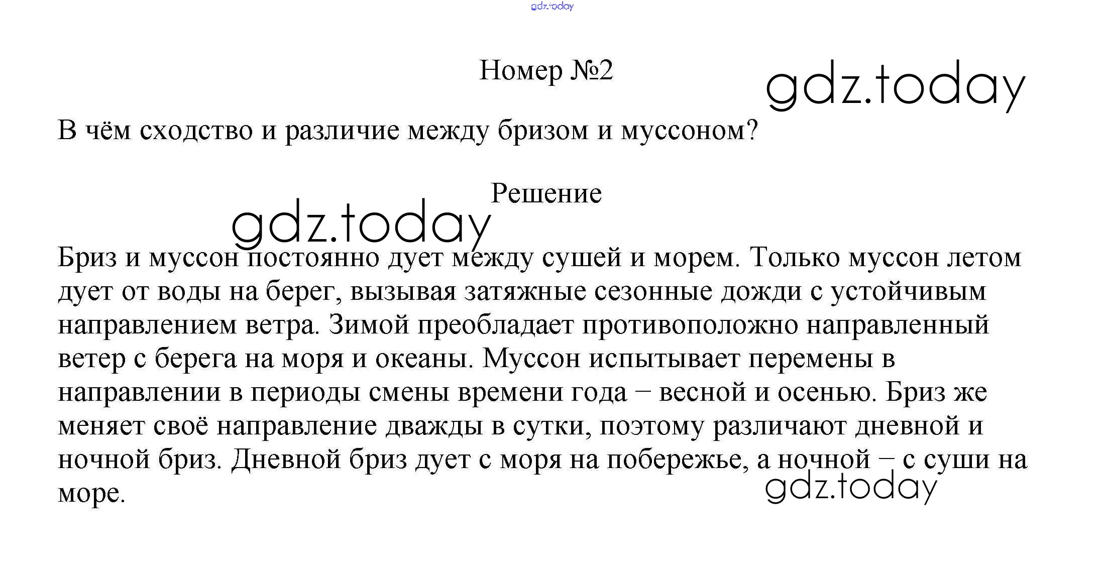 На страницах сайта gdz.today вы найдете учебный и вспомогательный материал, направленный на улучшения знаний школьной программы. ГДЗ - онлайн мир знаний Решение к §42. Ветер 2 Учебнику по Географии для 5-6 класса Алексеев, Николина Просвещение Полярная звезда 2018