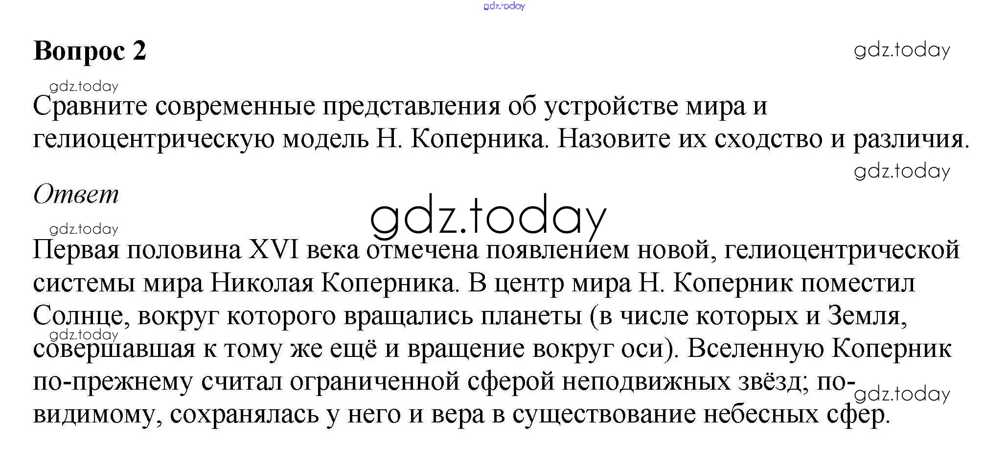 На страницах сайта gdz.today вы найдете учебный и вспомогательный материал, направленный на улучшения знаний школьной программы. ГДЗ - онлайн мир знаний Вопросы и задания §1. Представления об устройстве мира 2 Учебнику по Географии для 5-6 класса Климанова, Климанов Дрофа Вертикаль 2017