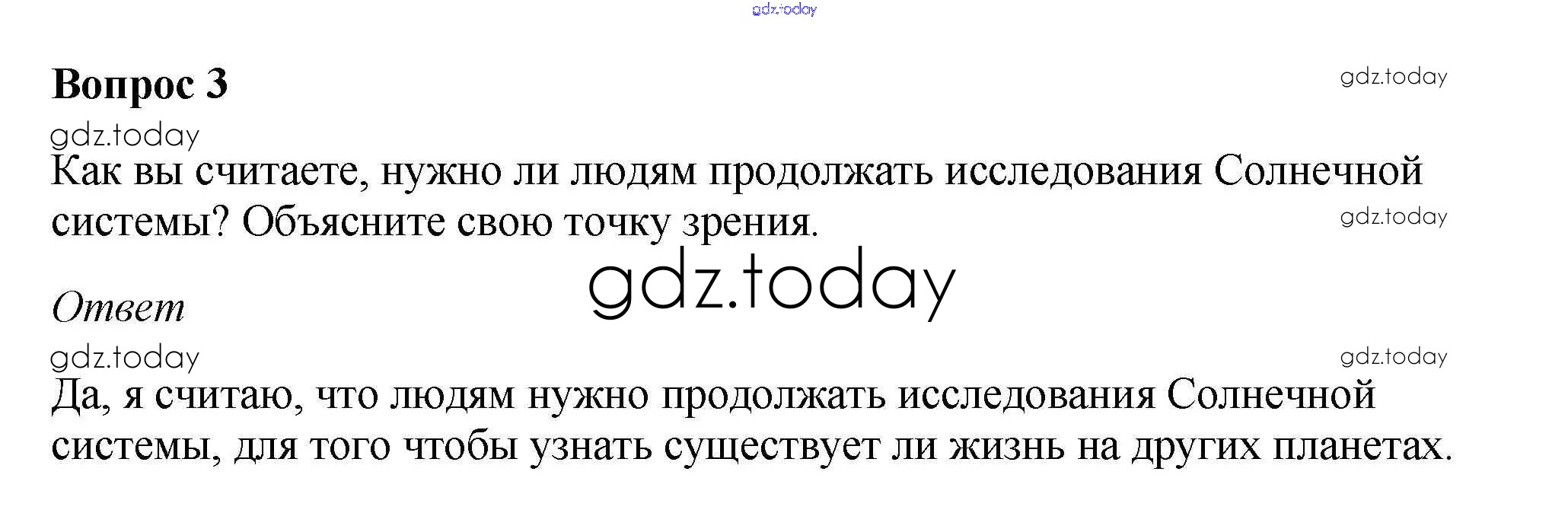 На страницах сайта gdz.today вы найдете учебный и вспомогательный материал, направленный на улучшения знаний школьной программы. ГДЗ - онлайн мир знаний Вопросы и задания §3. Солнечная система 3 Учебнику по Географии для 5-6 класса Климанова, Климанов Дрофа Вертикаль 2017