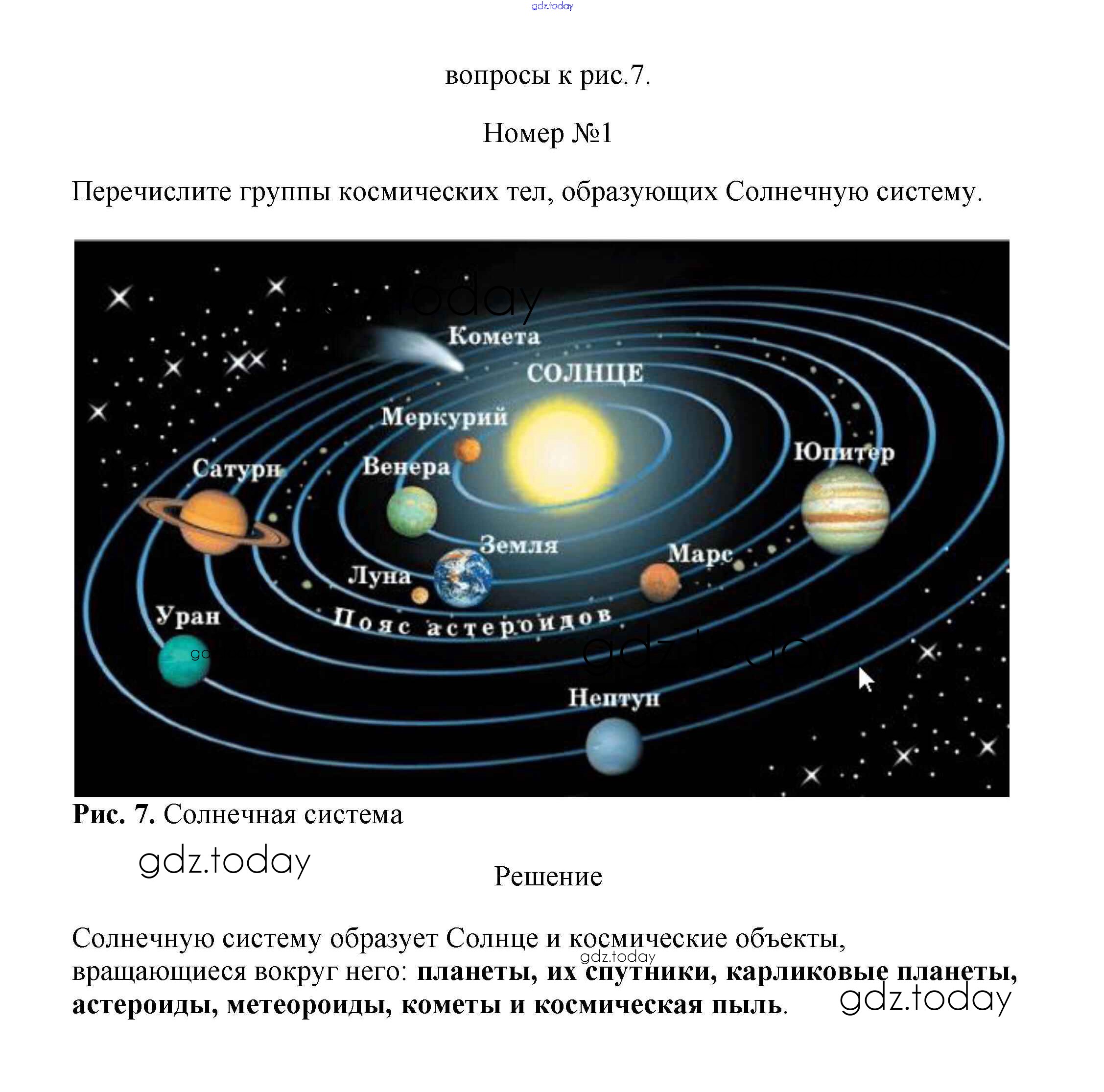 На страницах сайта gdz.today вы найдете учебный и вспомогательный материал, направленный на улучшения знаний школьной программы. ГДЗ - онлайн мир знаний Вопросы к рисункам §3. Солнечная система рис. 7 Учебнику по Географии для 5-6 класса Климанова, Климанов Дрофа Вертикаль 2017