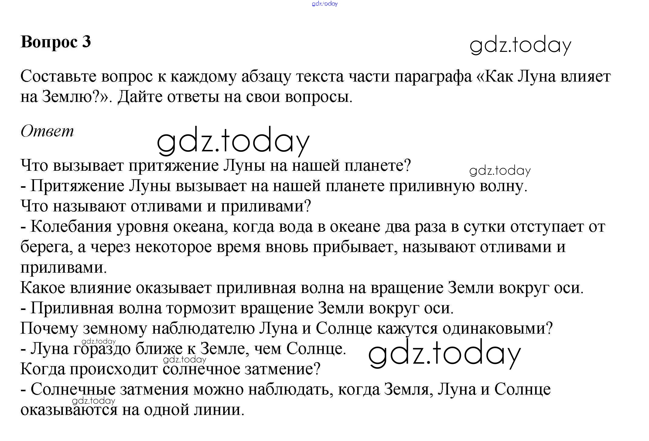 На страницах сайта gdz.today вы найдете учебный и вспомогательный материал, направленный на улучшения знаний школьной программы. ГДЗ - онлайн мир знаний Вопросы и задания §4. Луна — спутник Земли 3 Учебнику по Географии для 5-6 класса Климанова, Климанов Дрофа Вертикаль 2017