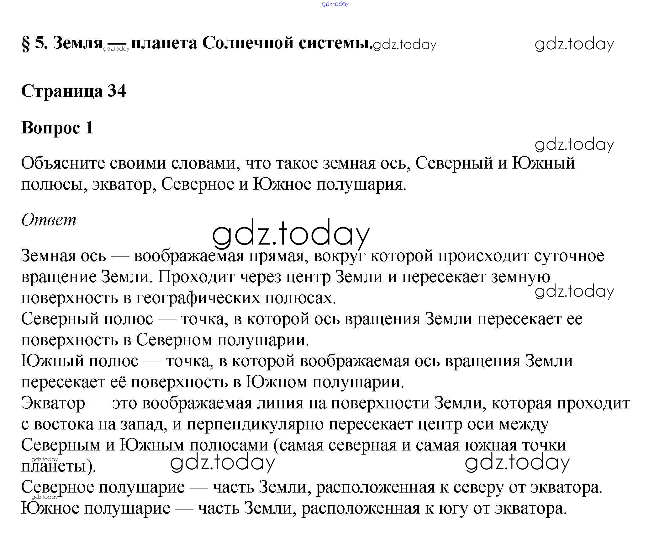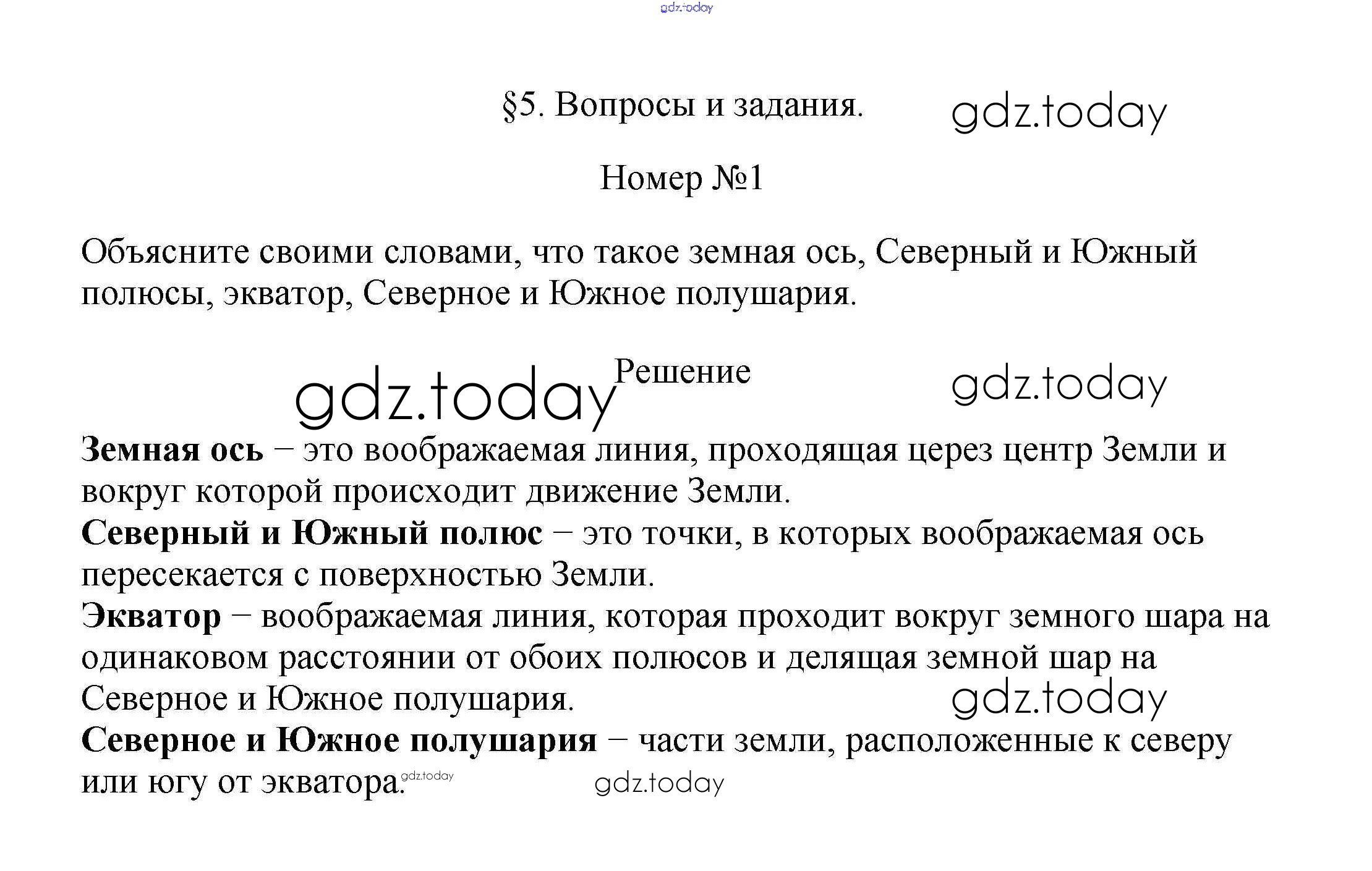 На страницах сайта gdz.today вы найдете учебный и вспомогательный материал, направленный на улучшения знаний школьной программы. ГДЗ - онлайн мир знаний Вопросы и задания §5. Земля — планета Солнечной системы 1 Учебнику по Географии для 5-6 класса Климанова, Климанов Дрофа Вертикаль 2017