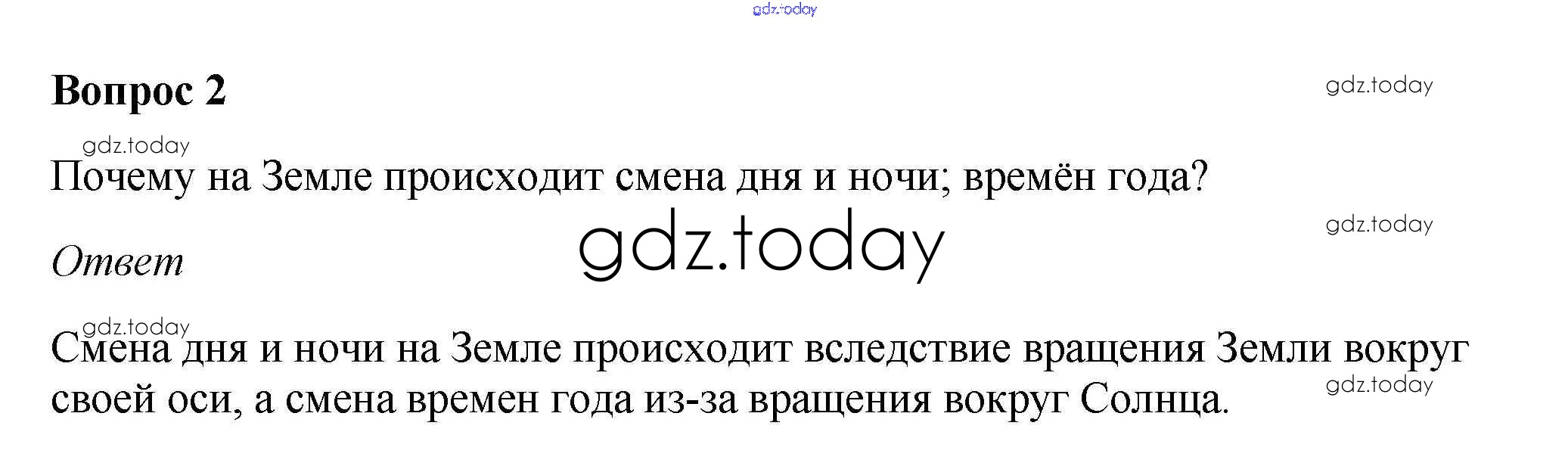 На страницах сайта gdz.today вы найдете учебный и вспомогательный материал, направленный на улучшения знаний школьной программы. ГДЗ - онлайн мир знаний Вопросы и задания §5. Земля — планета Солнечной системы 2 Учебнику по Географии для 5-6 класса Климанова, Климанов Дрофа Вертикаль 2017
