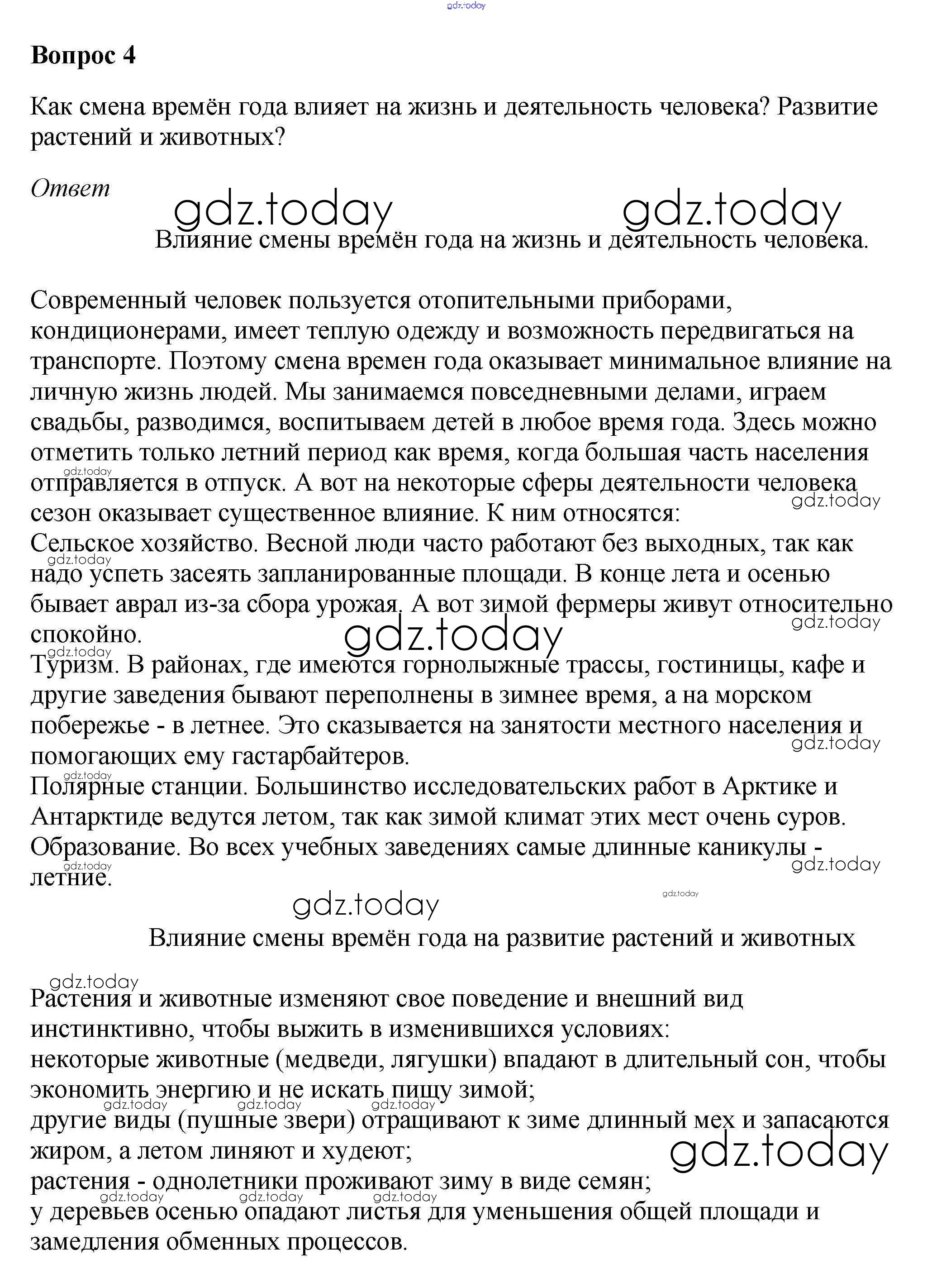 На страницах сайта gdz.today вы найдете учебный и вспомогательный материал, направленный на улучшения знаний школьной программы. ГДЗ - онлайн мир знаний Вопросы и задания §5. Земля — планета Солнечной системы 4 Учебнику по Географии для 5-6 класса Климанова, Климанов Дрофа Вертикаль 2017