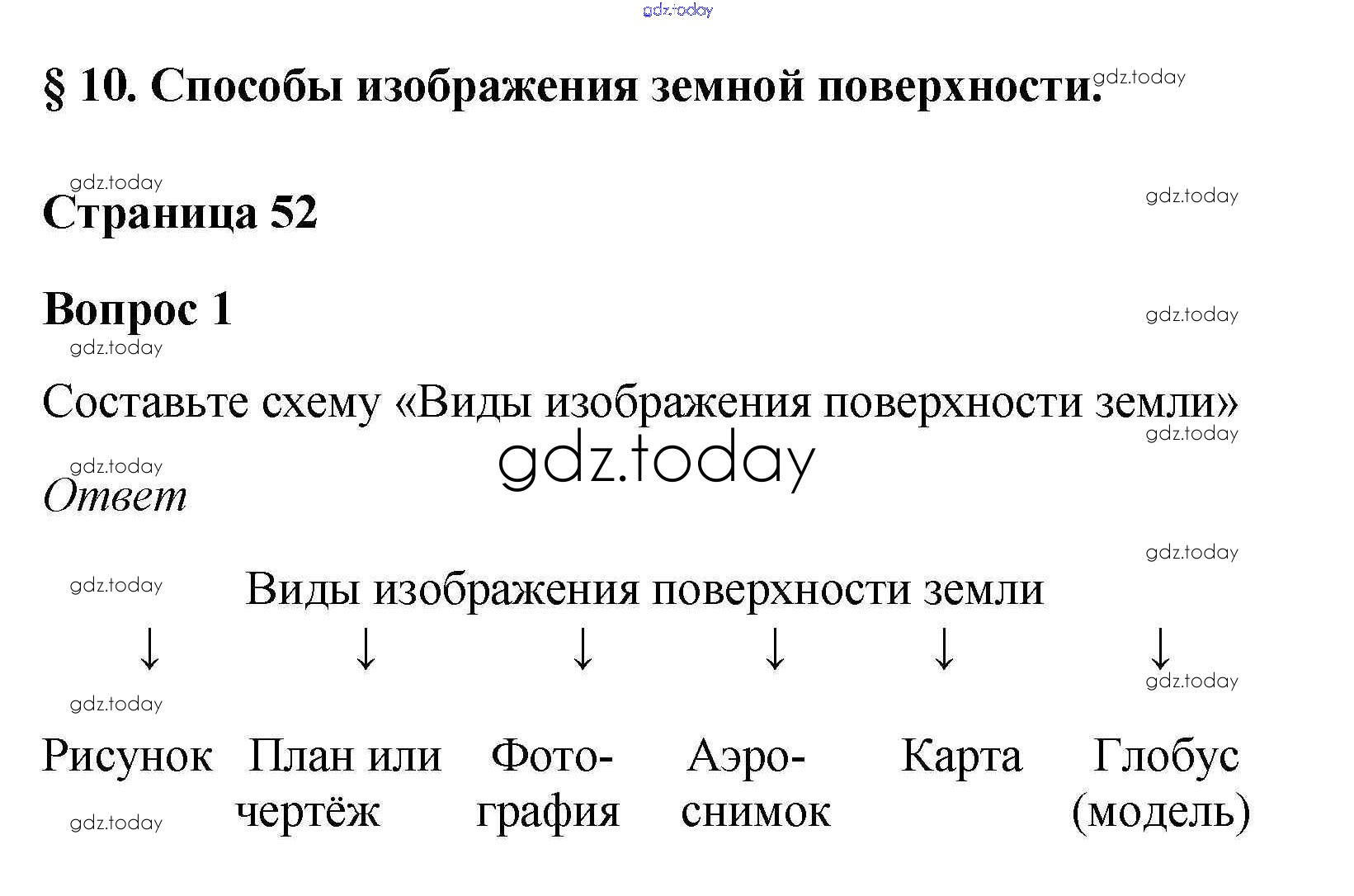 На страницах сайта gdz.today вы найдете учебный и вспомогательный материал, направленный на улучшения знаний школьной программы. ГДЗ - онлайн мир знаний Вопросы и задания §10. Способы изображения земной поверхности 1 Учебнику по Географии для 5-6 класса Климанова, Климанов Дрофа Вертикаль 2017