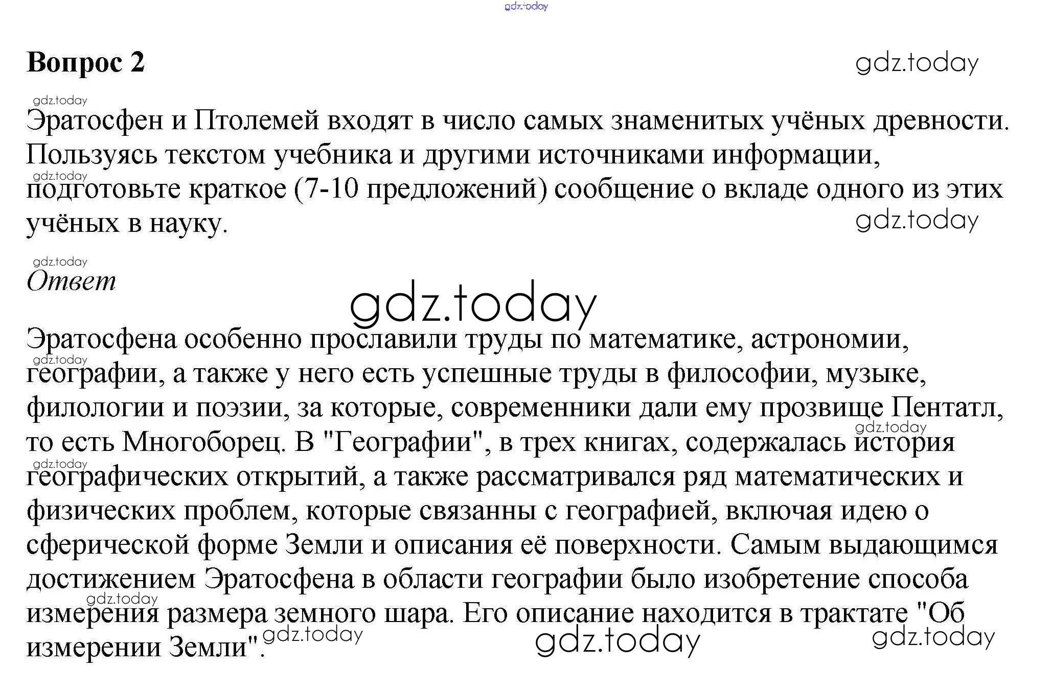 На страницах сайта gdz.today вы найдете учебный и вспомогательный материал, направленный на улучшения знаний школьной программы. ГДЗ - онлайн мир знаний Вопросы и задания §12. Географические открытия древности 2 Учебнику по Географии для 5-6 класса Климанова, Климанов Дрофа Вертикаль 2017