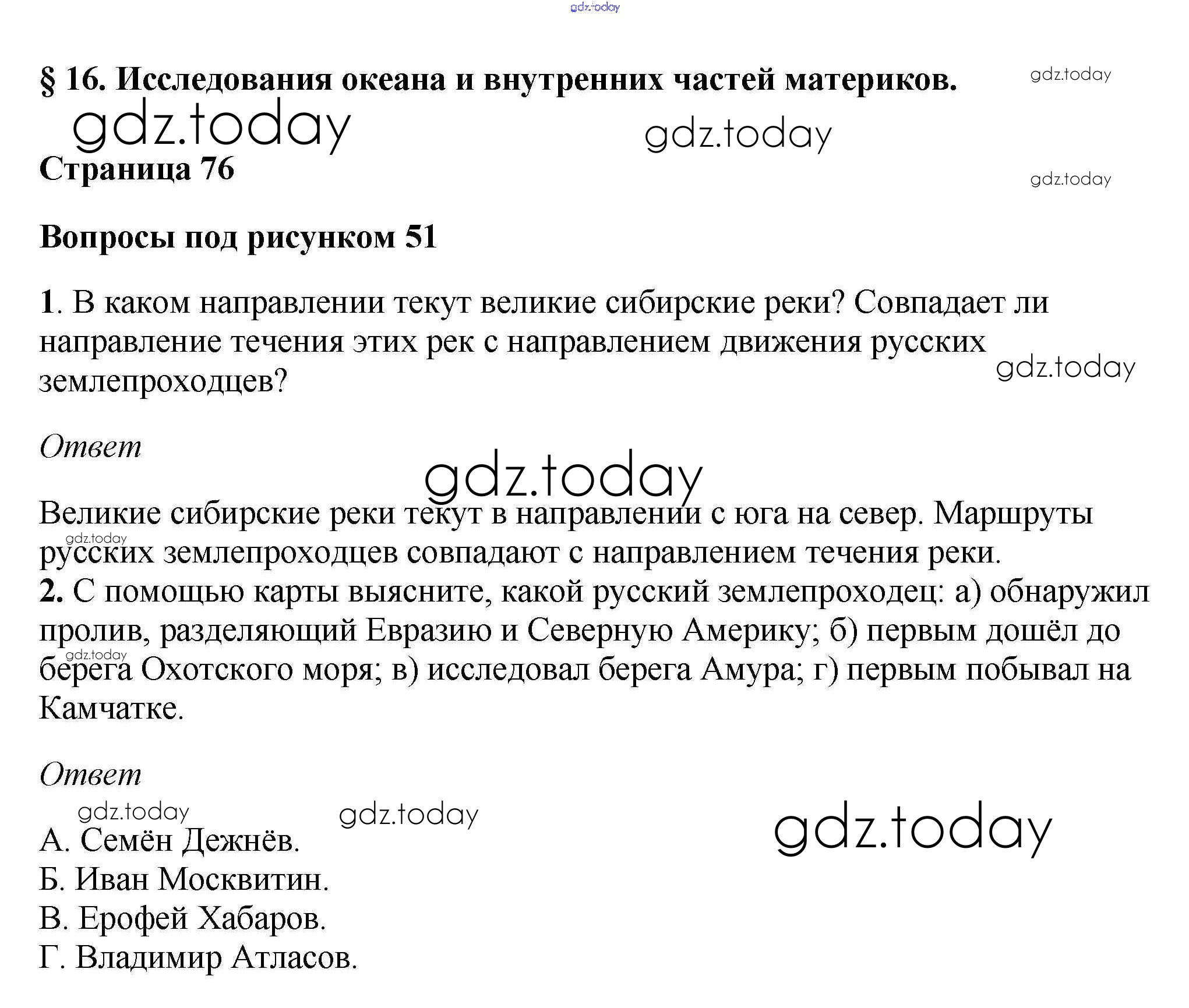 На страницах сайта gdz.today вы найдете учебный и вспомогательный материал, направленный на улучшения знаний школьной программы. ГДЗ - онлайн мир знаний Вопросы к рисункам §16. Исследования океана и внутренних частей материков рис. 51 Учебнику по Географии для 5-6 класса Климанова, Климанов Дрофа Вертикаль 2017
