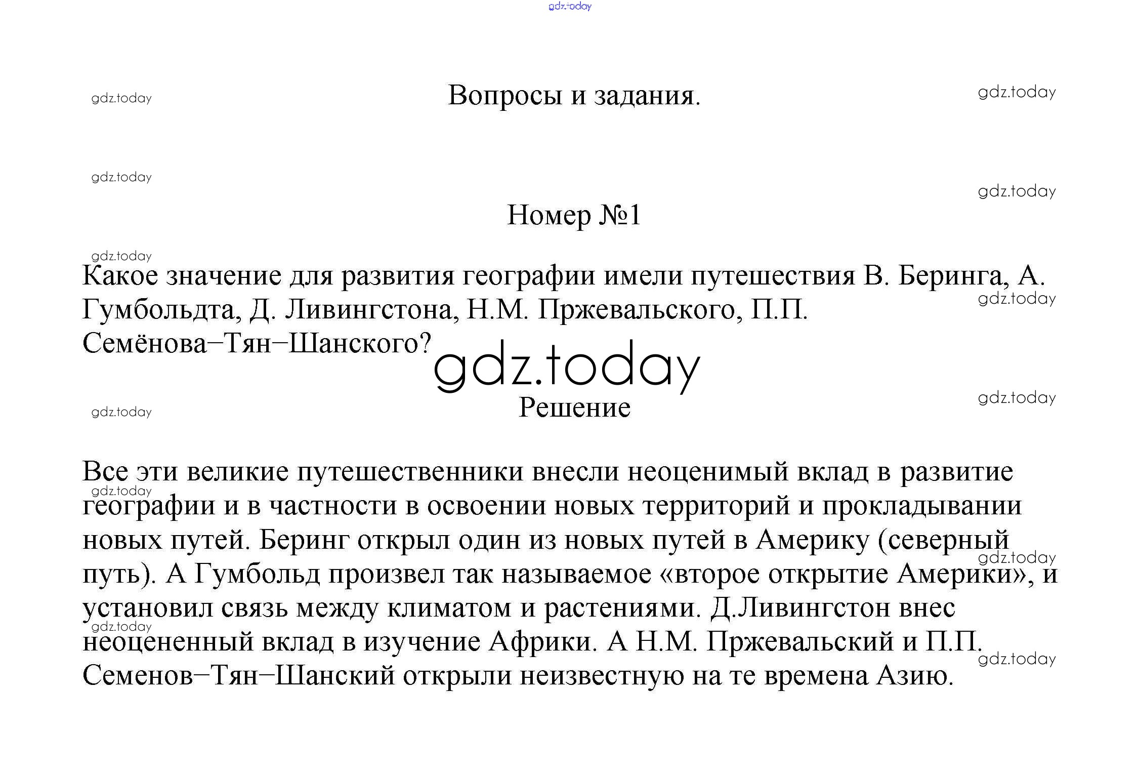 Ответы к Вопросы и задания §16. Исследования океана и внутренних частей материков 1 Учебнику по Географии для 5-6 класса Климанова, Климанов Дрофа Вертикаль 2017