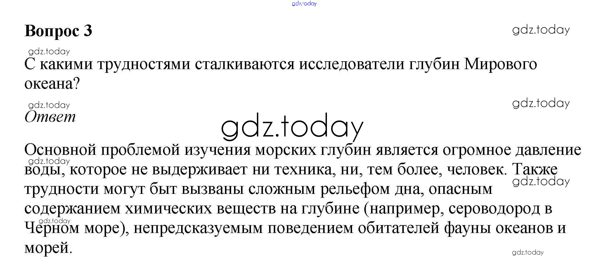 На страницах сайта gdz.today вы найдете учебный и вспомогательный материал, направленный на улучшения знаний школьной программы. ГДЗ - онлайн мир знаний Вопросы и задания §16. Исследования океана и внутренних частей материков 3 Учебнику по Географии для 5-6 класса Климанова, Климанов Дрофа Вертикаль 2017