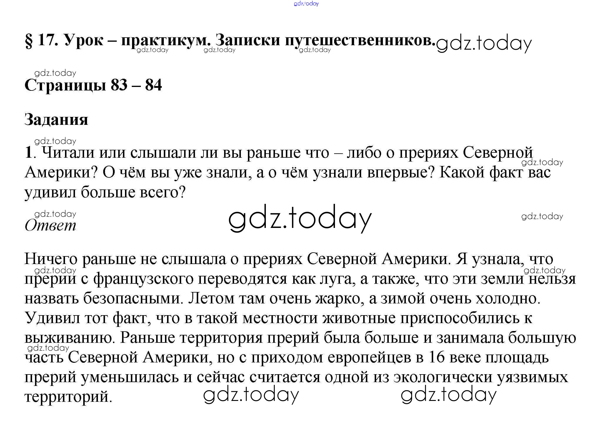 На страницах сайта gdz.today вы найдете учебный и вспомогательный материал, направленный на улучшения знаний школьной программы. ГДЗ - онлайн мир знаний Вопросы и задания §17. Урок-практикум. Записки путешественников и литературные произведения как источники географической информации 1 Учебнику по Географии для 5-6 класса Климанова, Климанов Дрофа Вертикаль 2017