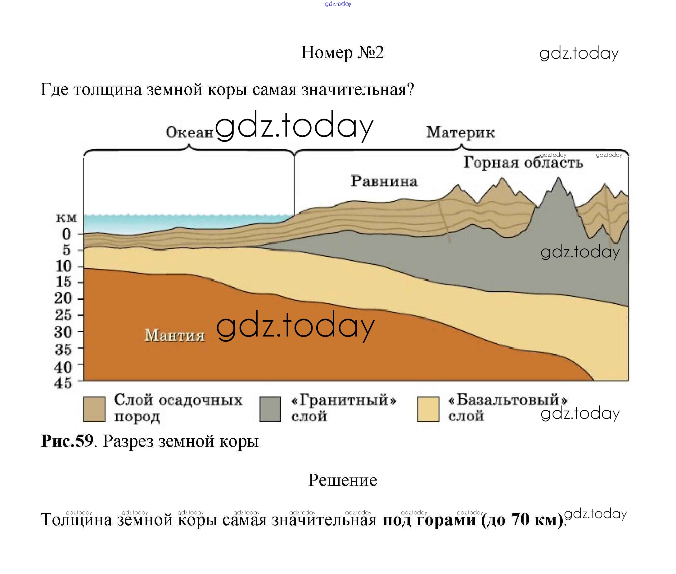 На страницах сайта gdz.today вы найдете учебный и вспомогательный материал, направленный на улучшения знаний школьной программы. ГДЗ - онлайн мир знаний Вопросы к рисункам §18. Внутреннее строение Земли рис. 59 Учебнику по Географии для 5-6 класса Климанова, Климанов Дрофа Вертикаль 2017