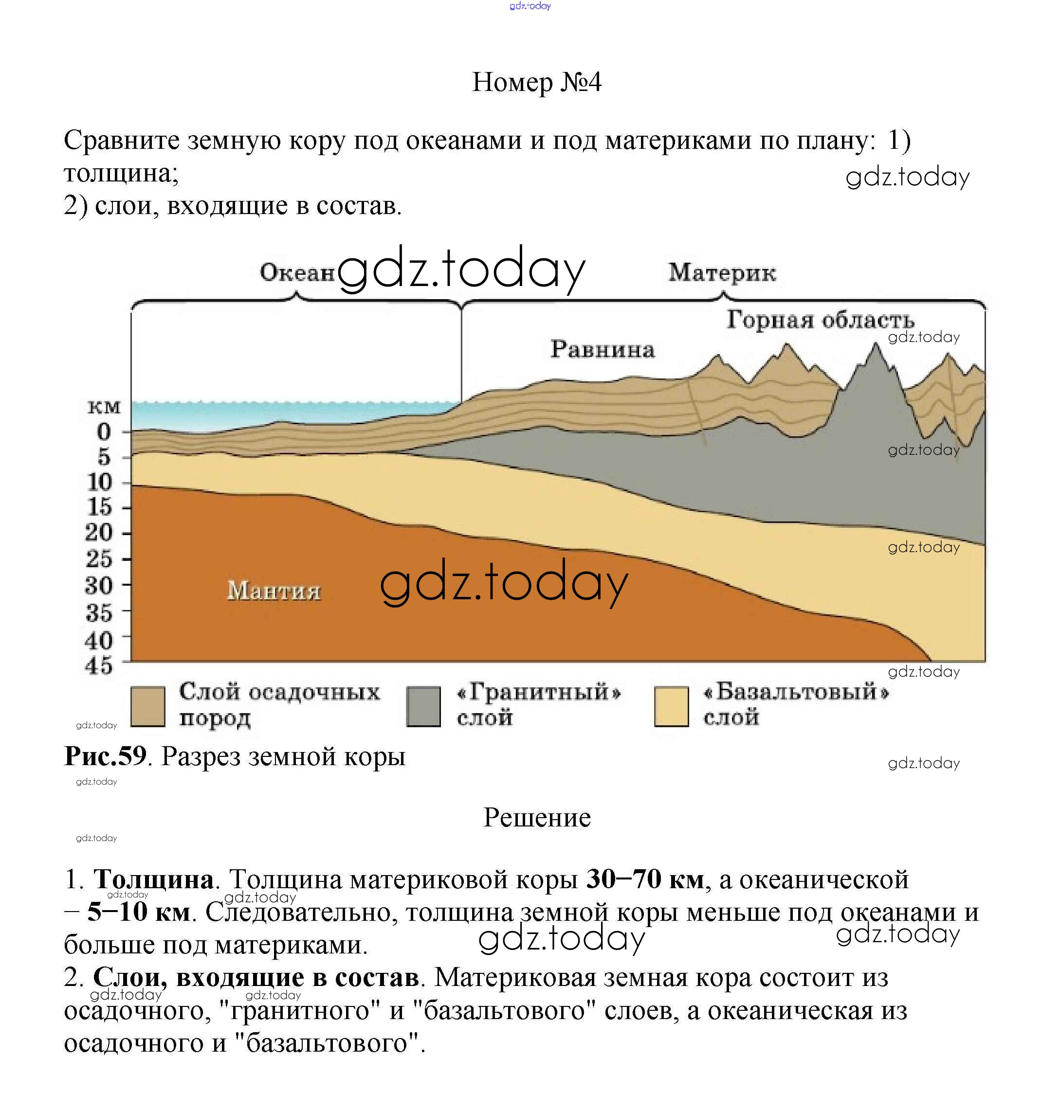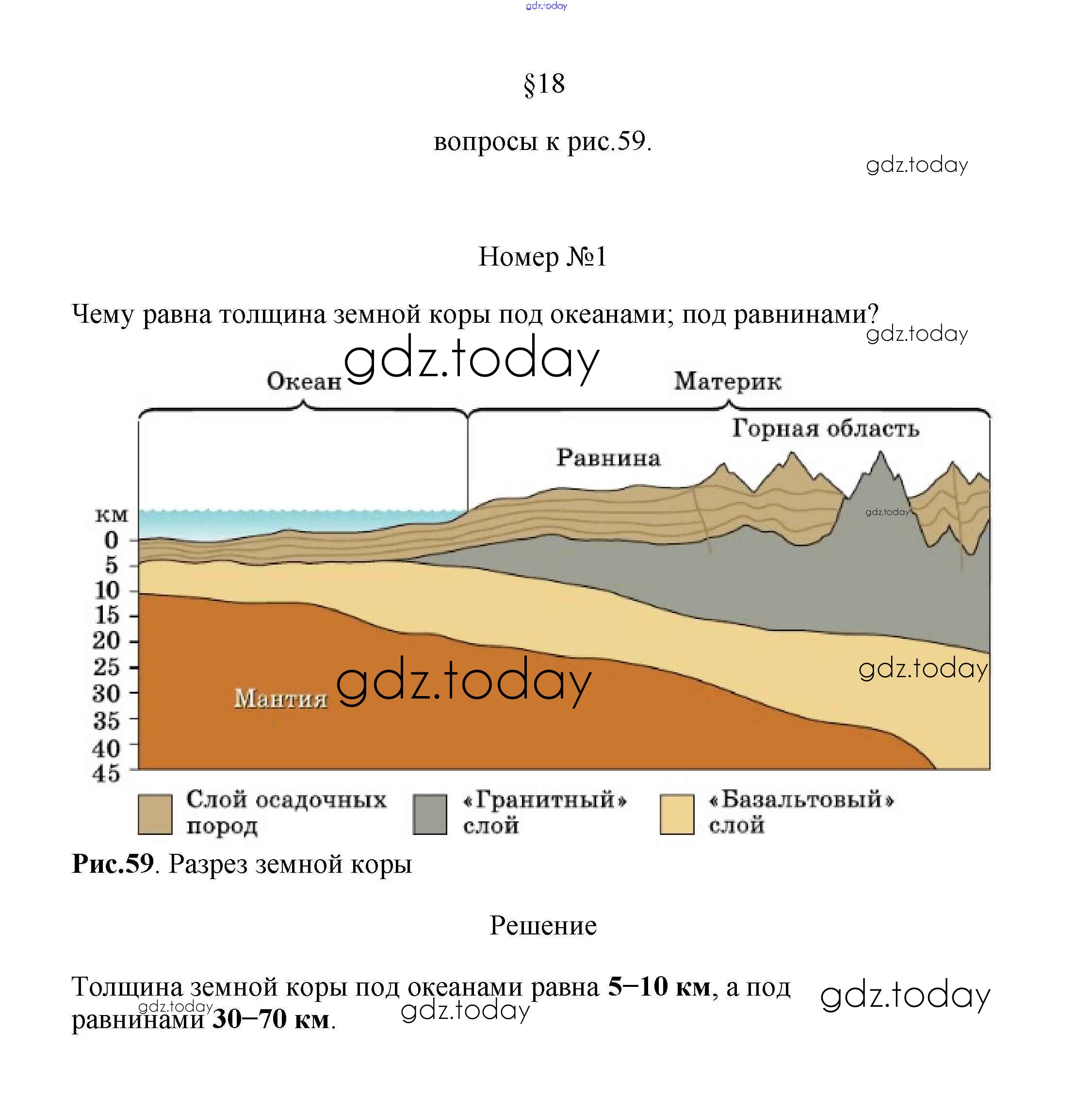 Ответы к Вопросы к рисункам §18. Внутреннее строение Земли рис. 59 Учебнику по Географии для 5-6 класса Климанова, Климанов Дрофа Вертикаль 2017