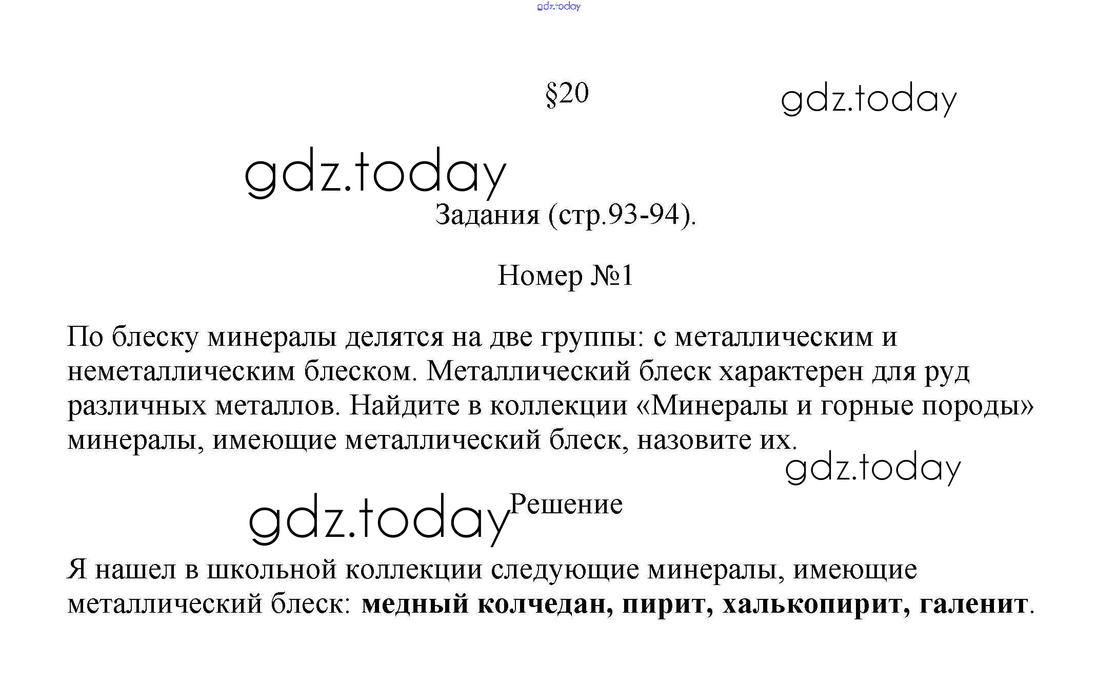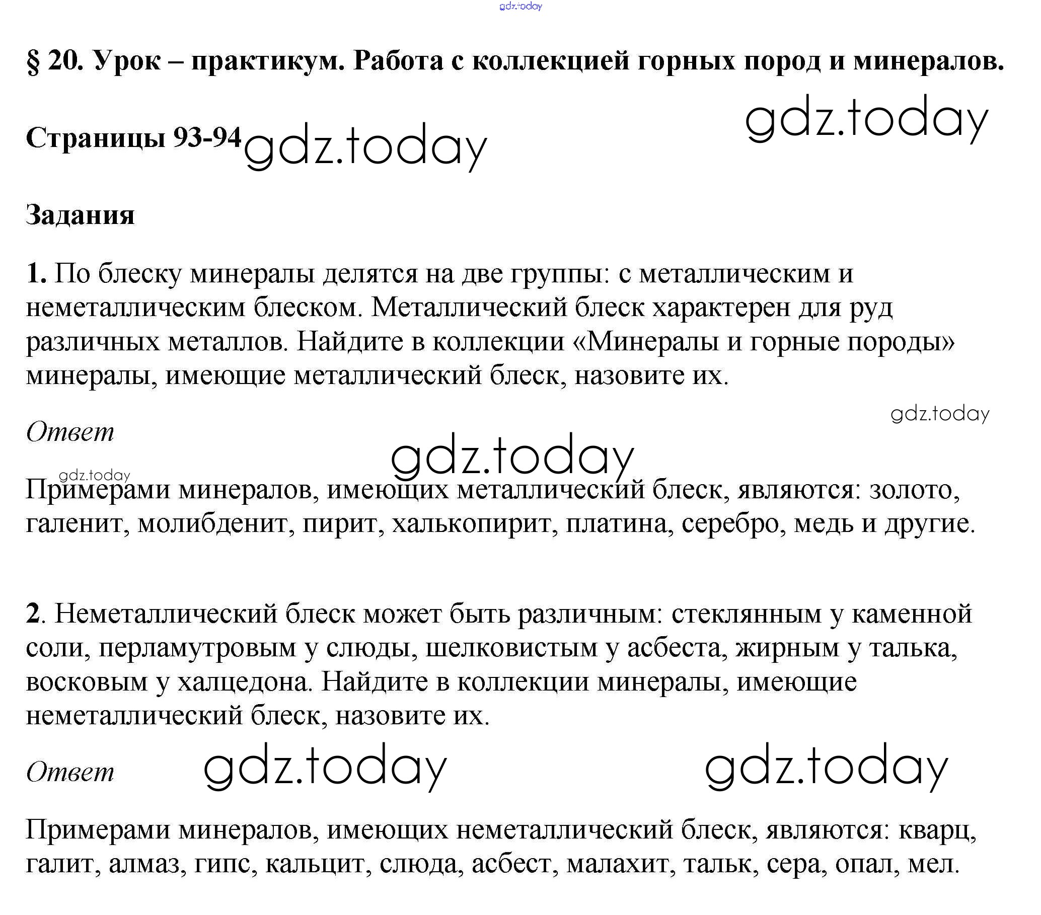 Ответы к Задания §20. Урок-практикум. Работа с коллекцией горных пород и минералов стр.93-94 Учебнику по Географии для 5-6 класса Климанова, Климанов Дрофа Вертикаль 2017