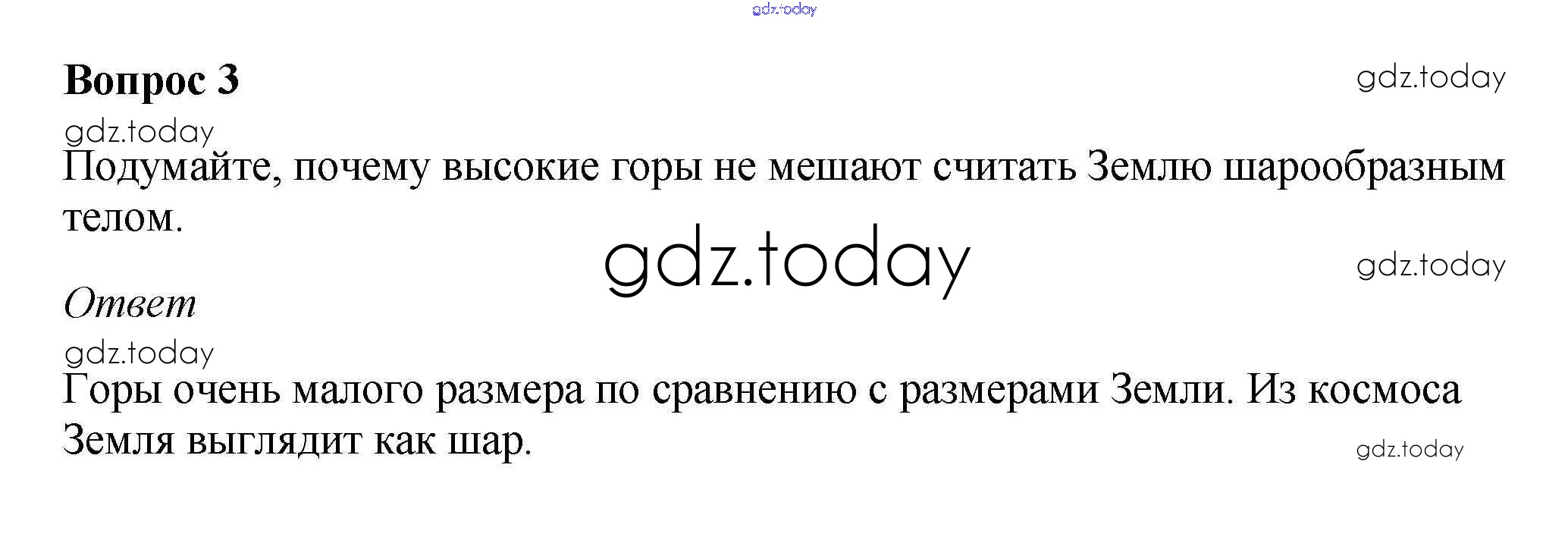 На страницах сайта gdz.today вы найдете учебный и вспомогательный материал, направленный на улучшения знаний школьной программы. ГДЗ - онлайн мир знаний Вопросы и задания §21. Рельеф и его значение для человека 3 Учебнику по Географии для 5-6 класса Климанова, Климанов Дрофа Вертикаль 2017